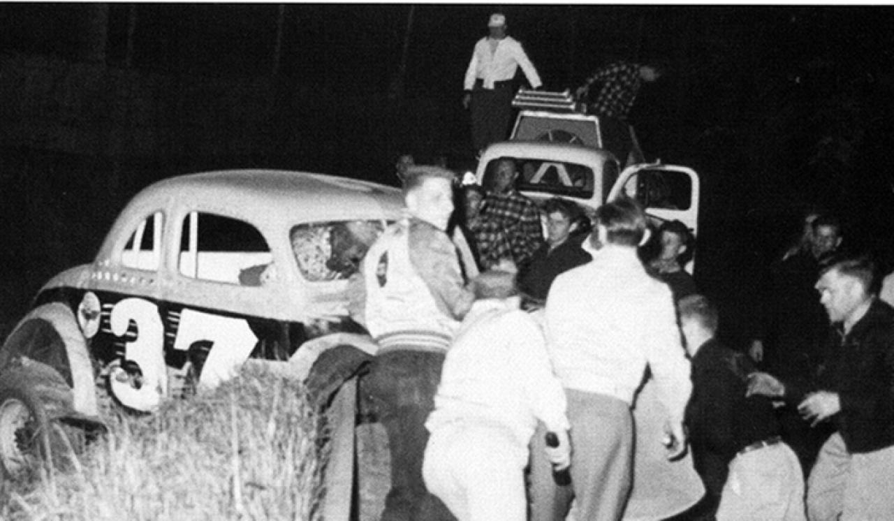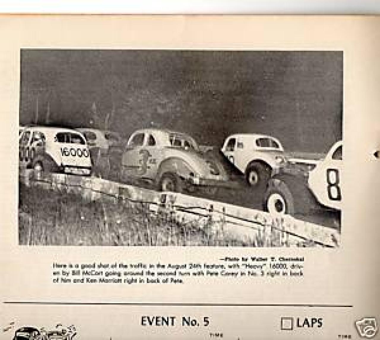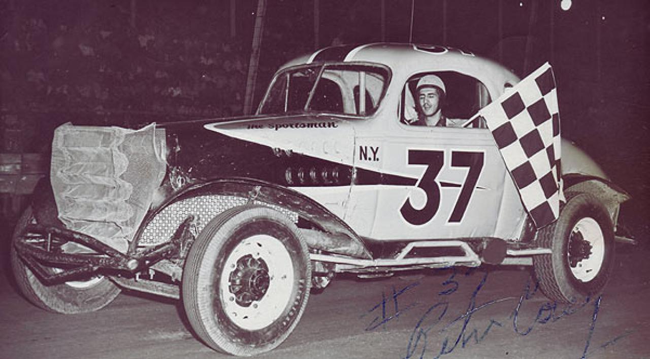 Actually,..........Although this car was built and maintained by Bob Whitbeck of Canajoharie, NY, it was owned by Johnstown, NY's Harold Smith. It was destroyed in a fire in a garage owned by Mr. Smith. I will check with Mr. Smith's sister, my step-Mom, the exact year and post it.The black body, white flames and red #22 paint scheme made a lifetime impression on another very young Canajoharie native at the time, Dave Lape.Just take a look at this pic of Pete Corey. Ya know, they say it's not arrogance or cockeyness if you can back it up. This Guy proved it every time he strapped that helmet on.