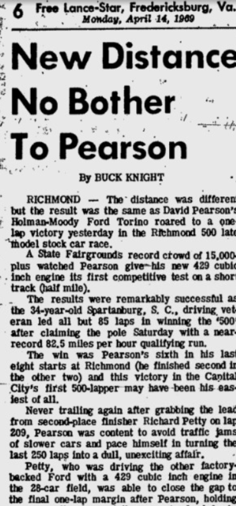 So sorry to hear of mr. Streeter's passing. I particularly enjoyed his stories of racing at Wilson, NC and Richmond where I had connections.