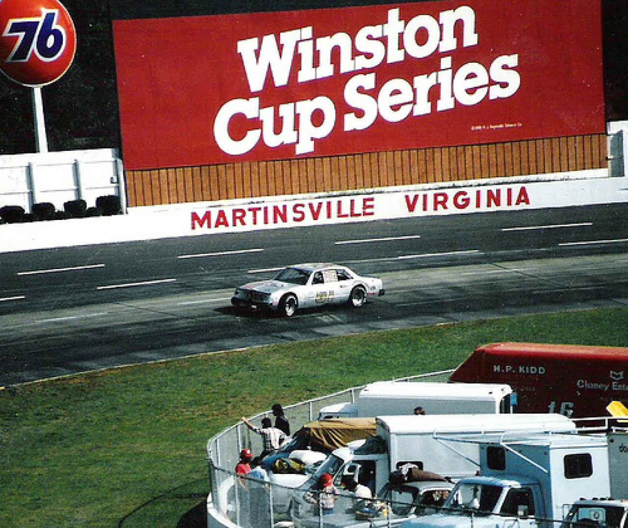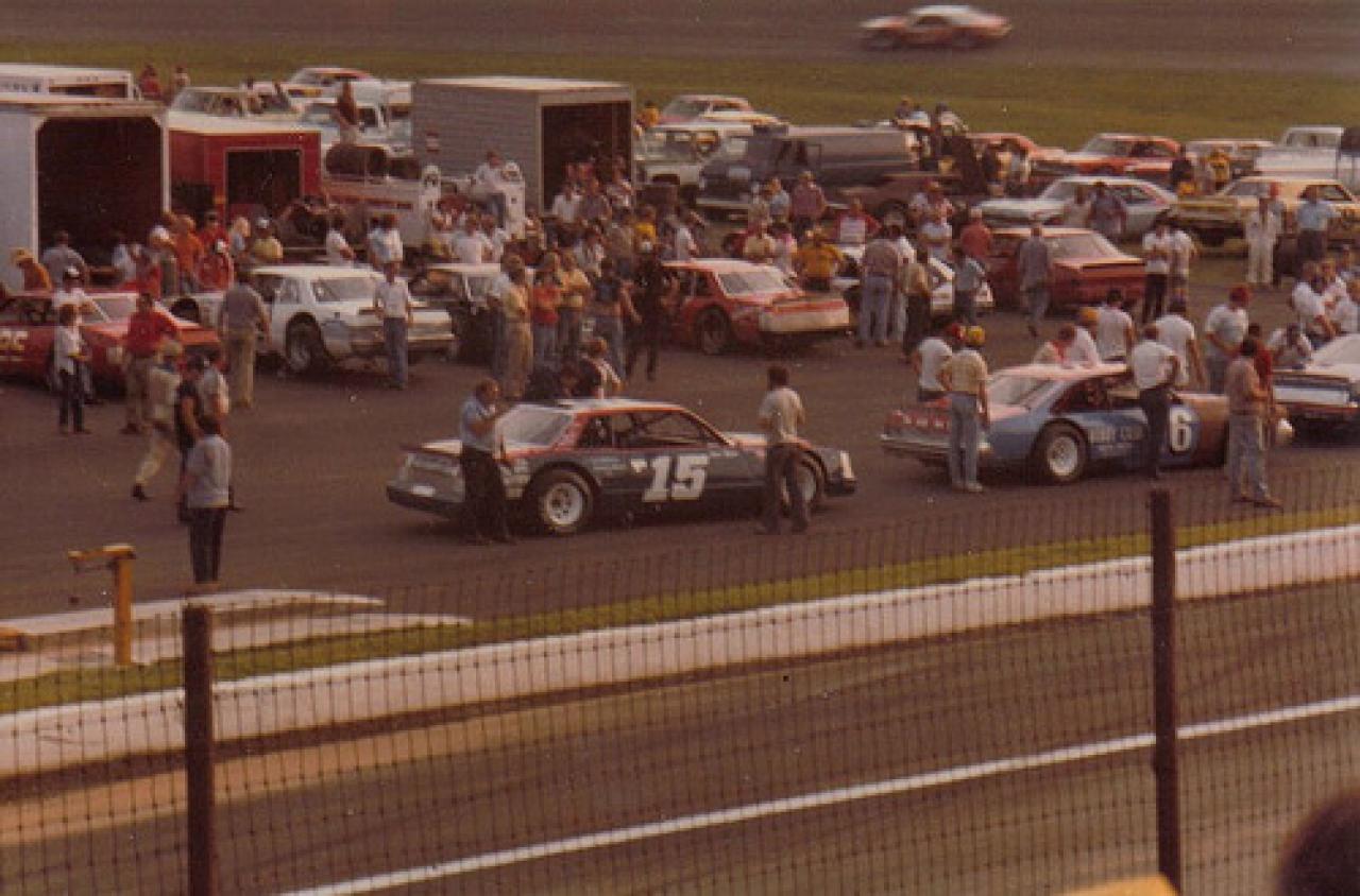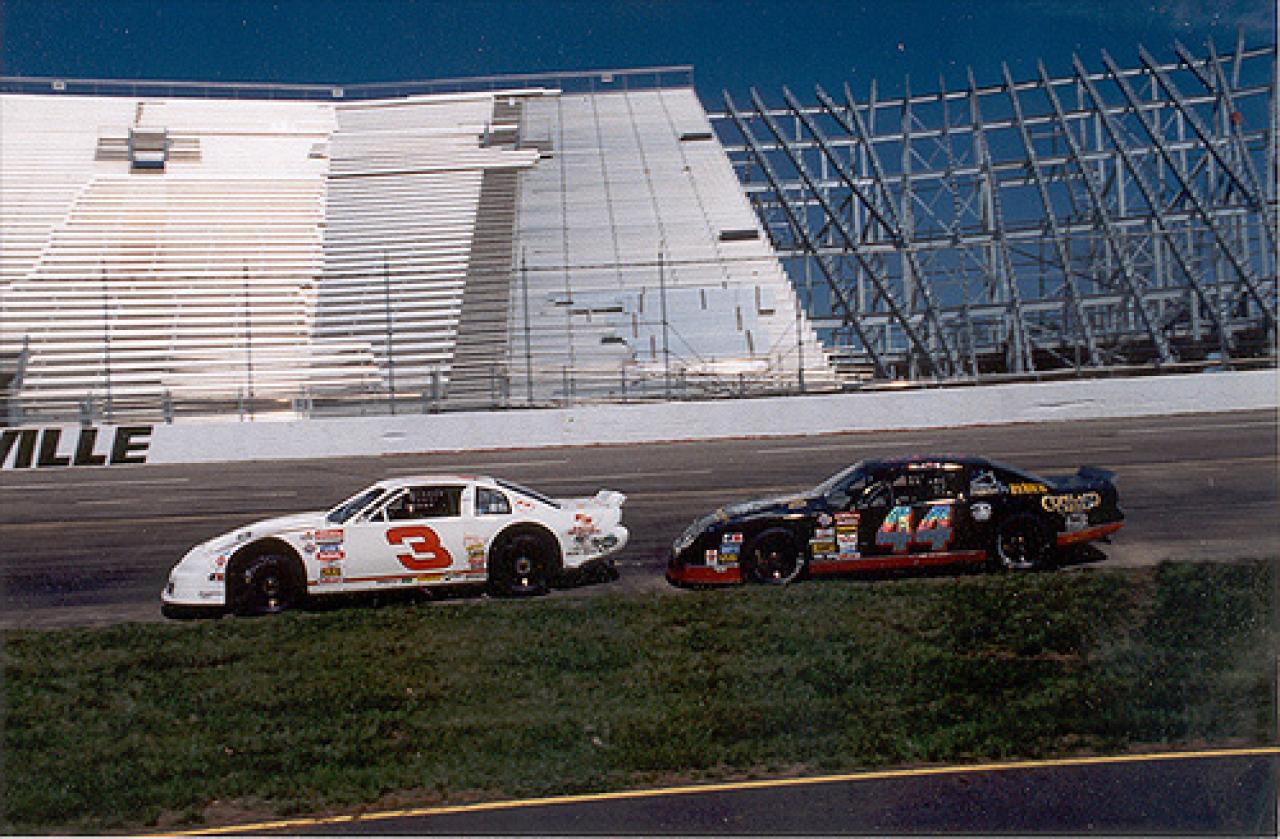 Dave Marcis(2) and Dale Earnhardt at Kingsport. (Photo courtesy of Lynn Peters Racing Archive)