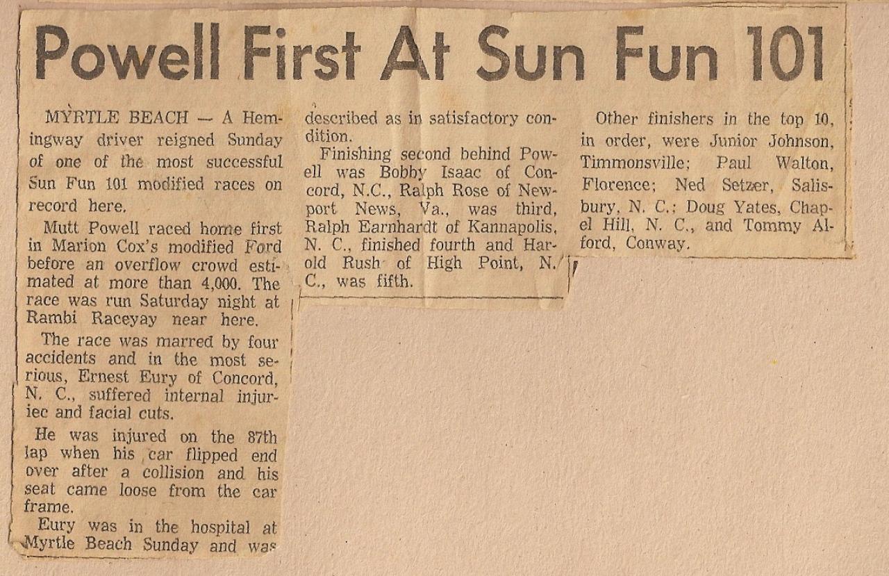 Mark, thanks for the photo of Thomas, always a front-runner at Conway Raceway. I remember his service station (complete with race car) "Live-Oak Texaco" in Conway. If you have any others from that time period, I hope you'll post them too. Racing pictures of Conway, Little River, and Twin City, are pretty rare.