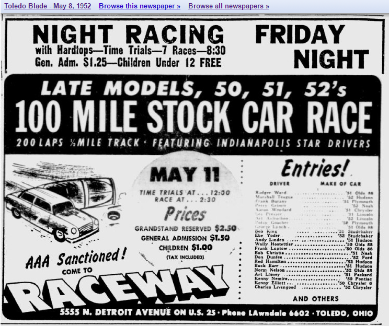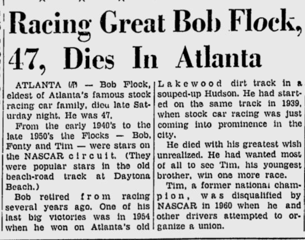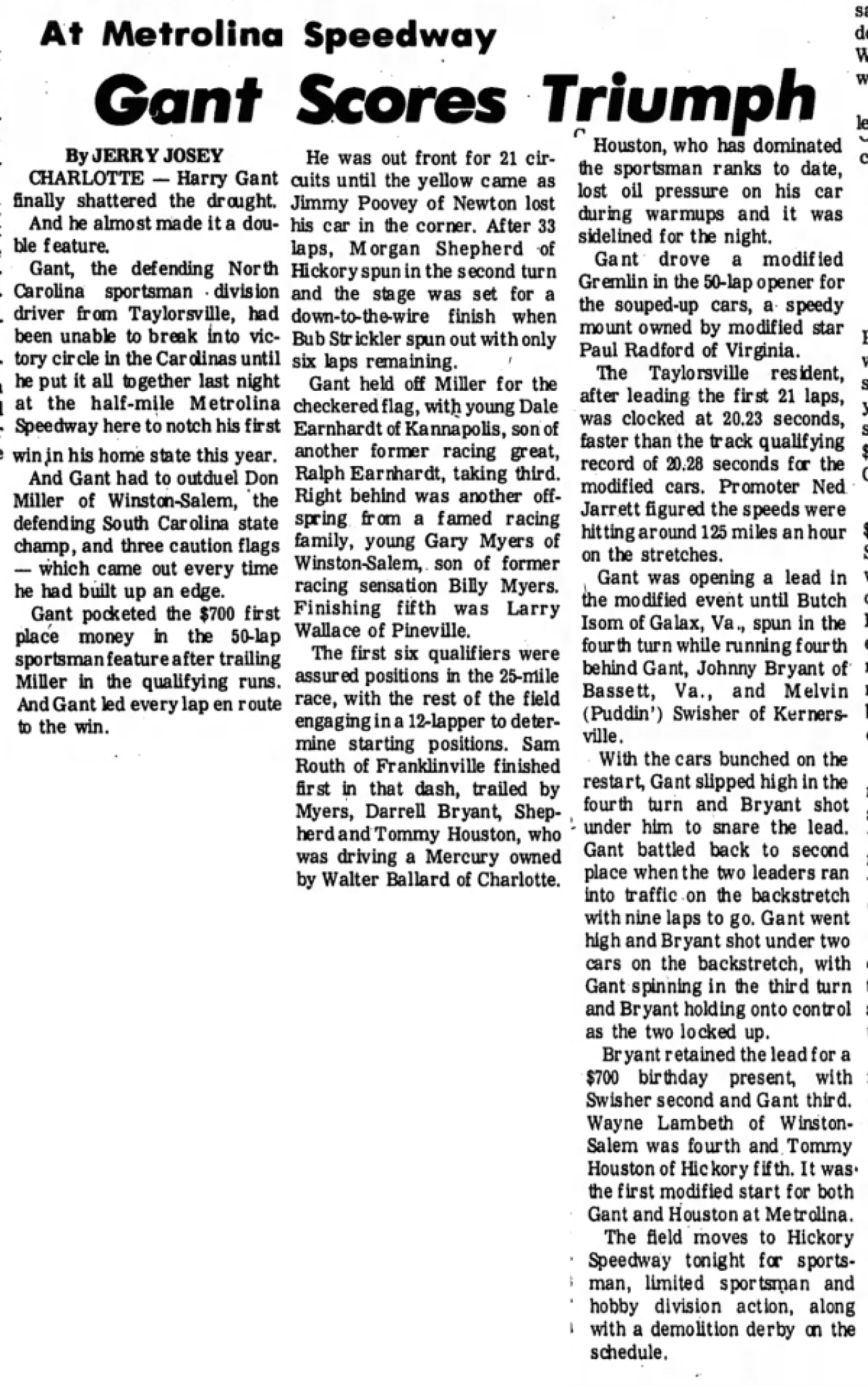 Article re: Herb Thomas' pole win