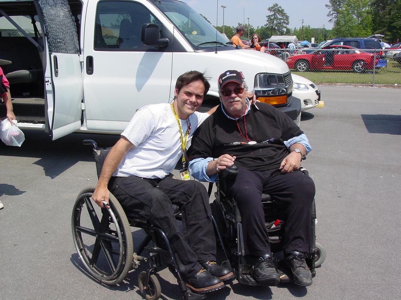 Sam (white sweater) with some old friends standing in front of Sam's 00 race car.