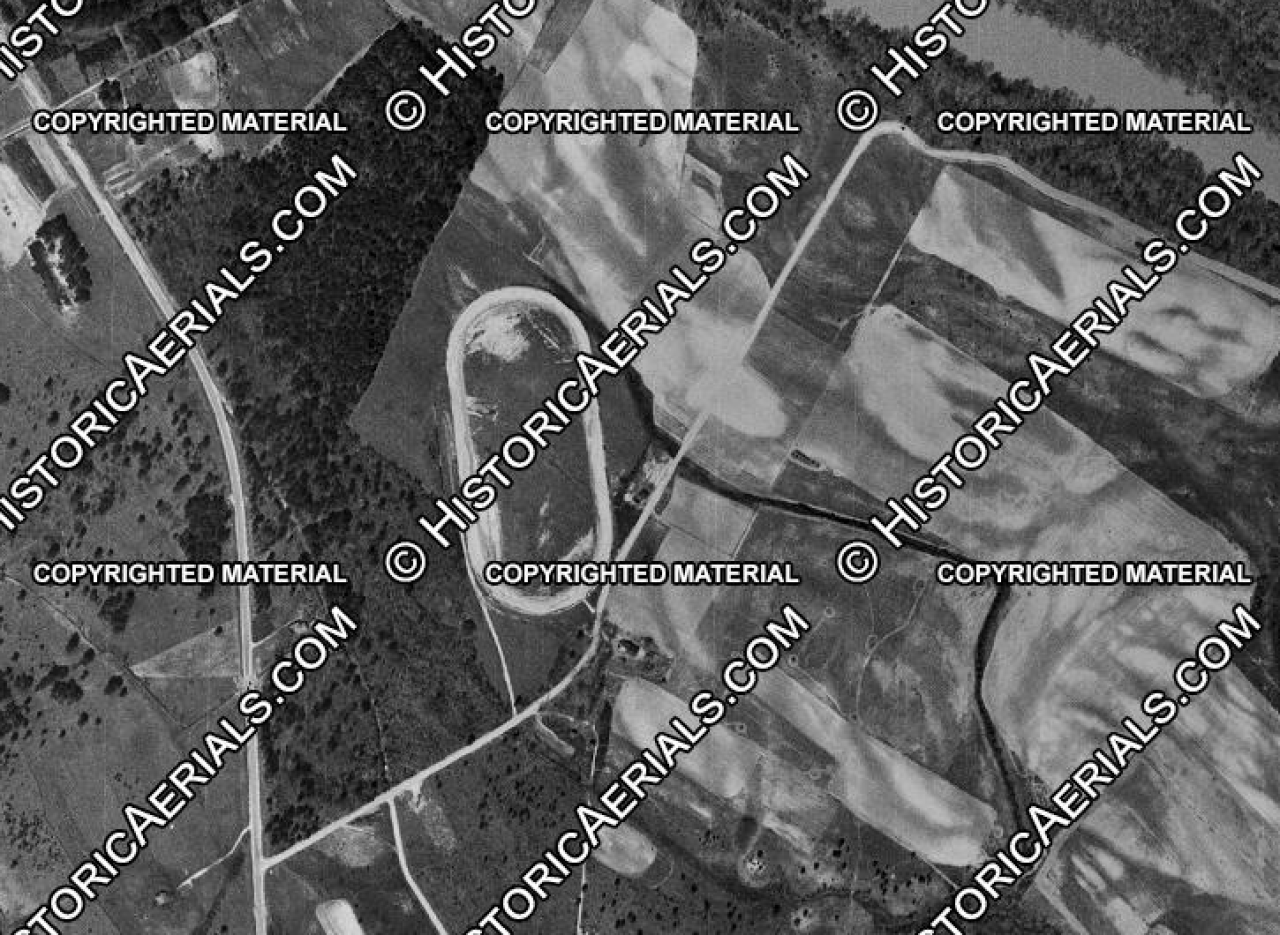I have been searching for a 1/2 mile track that ran "sprints" (roadsters?) in 1937. I came across this on a 1951 aerial. This oval lies 1.5 miles due East of the current Fayetteville Motor Speedway dirt track. Does anyone have any info on the track I am looking for?