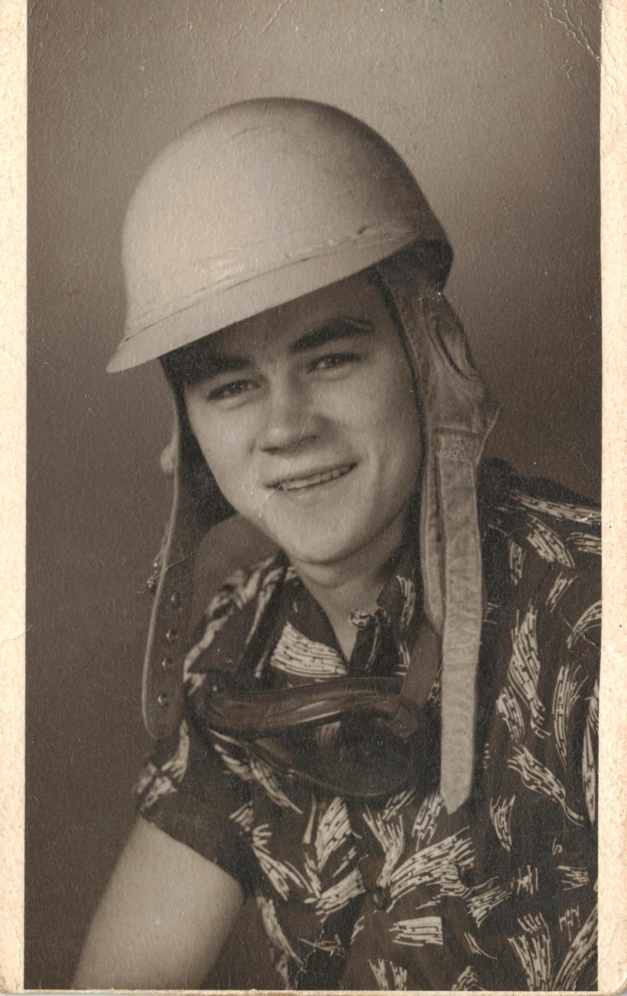 Billy Tidwell wearing an "Buzzy" named football helmet. Dennis Garrett Richmond, Va.