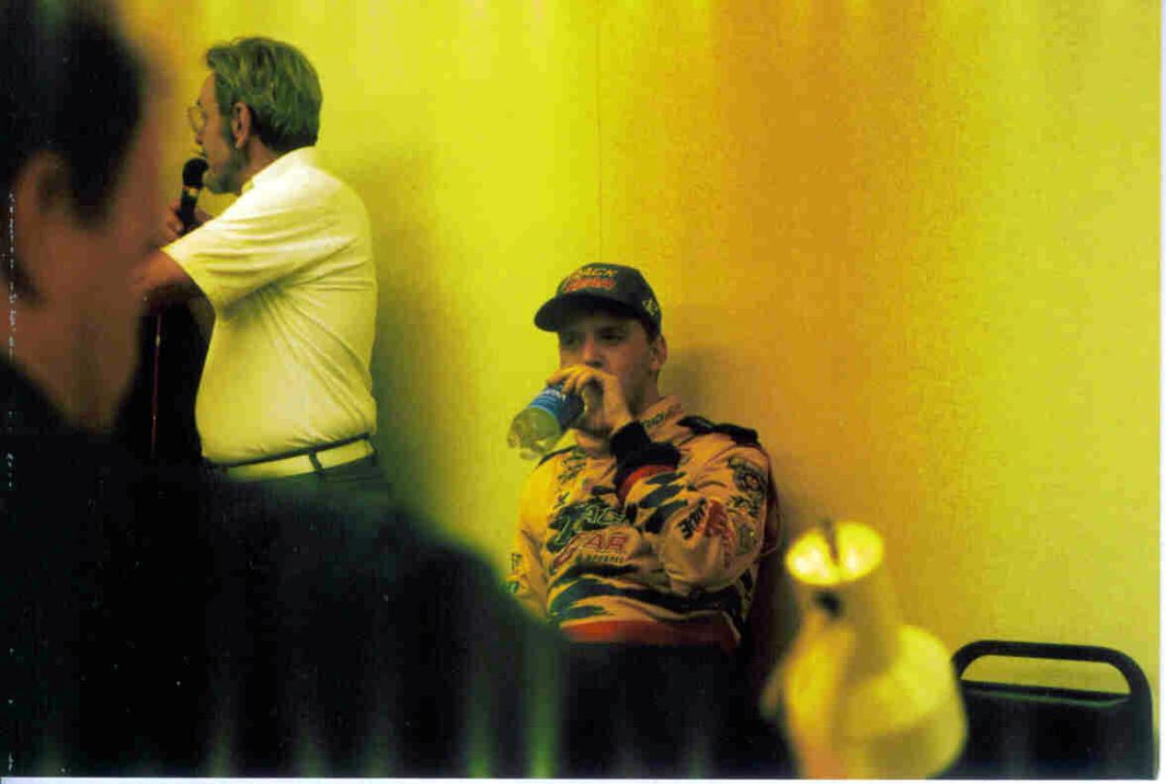 Terry Labonte was flagged the winner, under the yellow flag, of this June 6, 1998 Pontiac Excitement 400 at Richmond over Dale Jarrett, Rusty Wallace, Ken Schrader and Mark Martin. When it was discovered that Terry's 1st place payout would be $99,975, the press box offered to take up a collection to raise $25 to bump the check to an even $100,000!