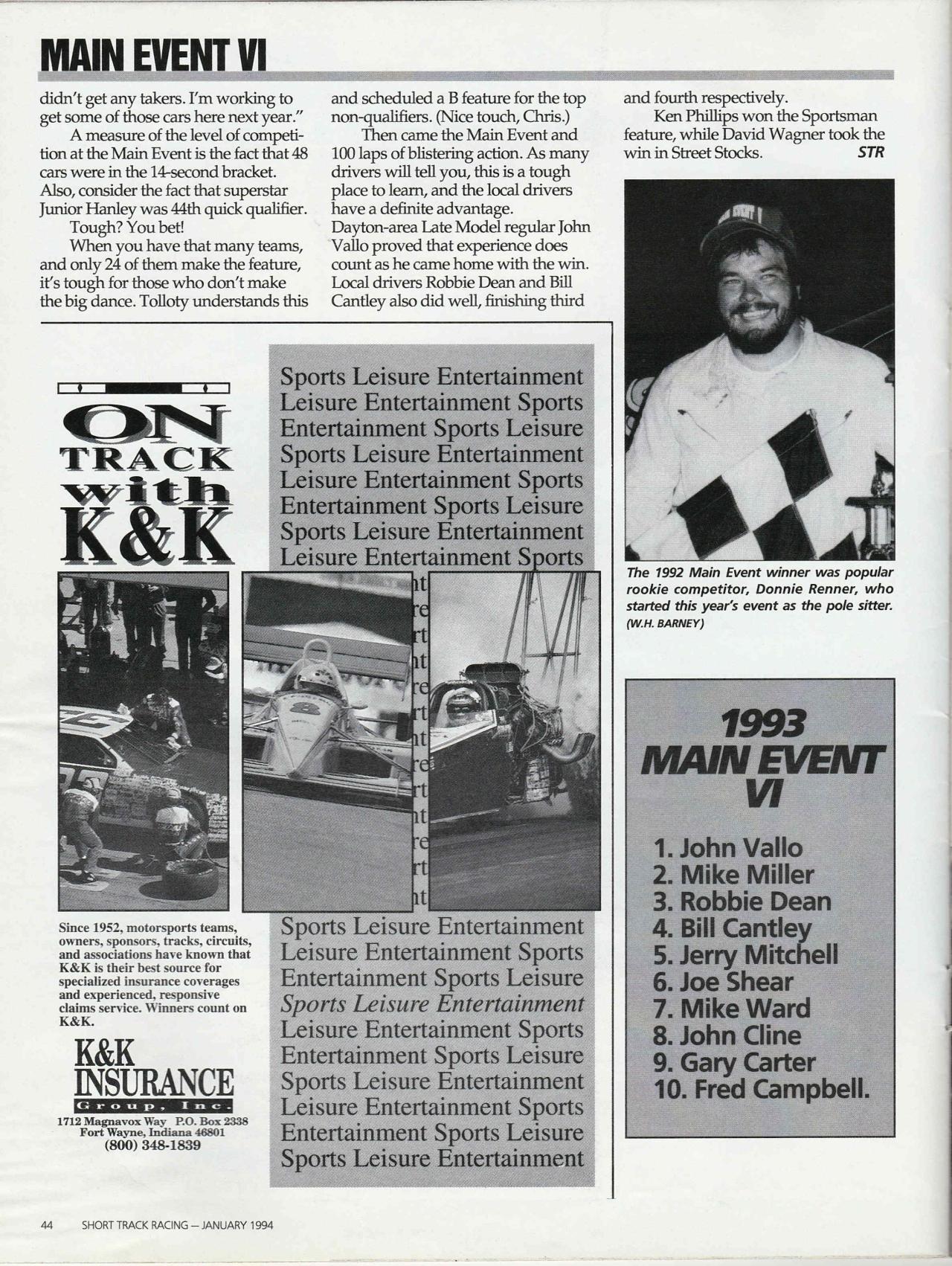 Ohio State (Main Event) Late Model Series Champion 1988, (Runner up in 1987)