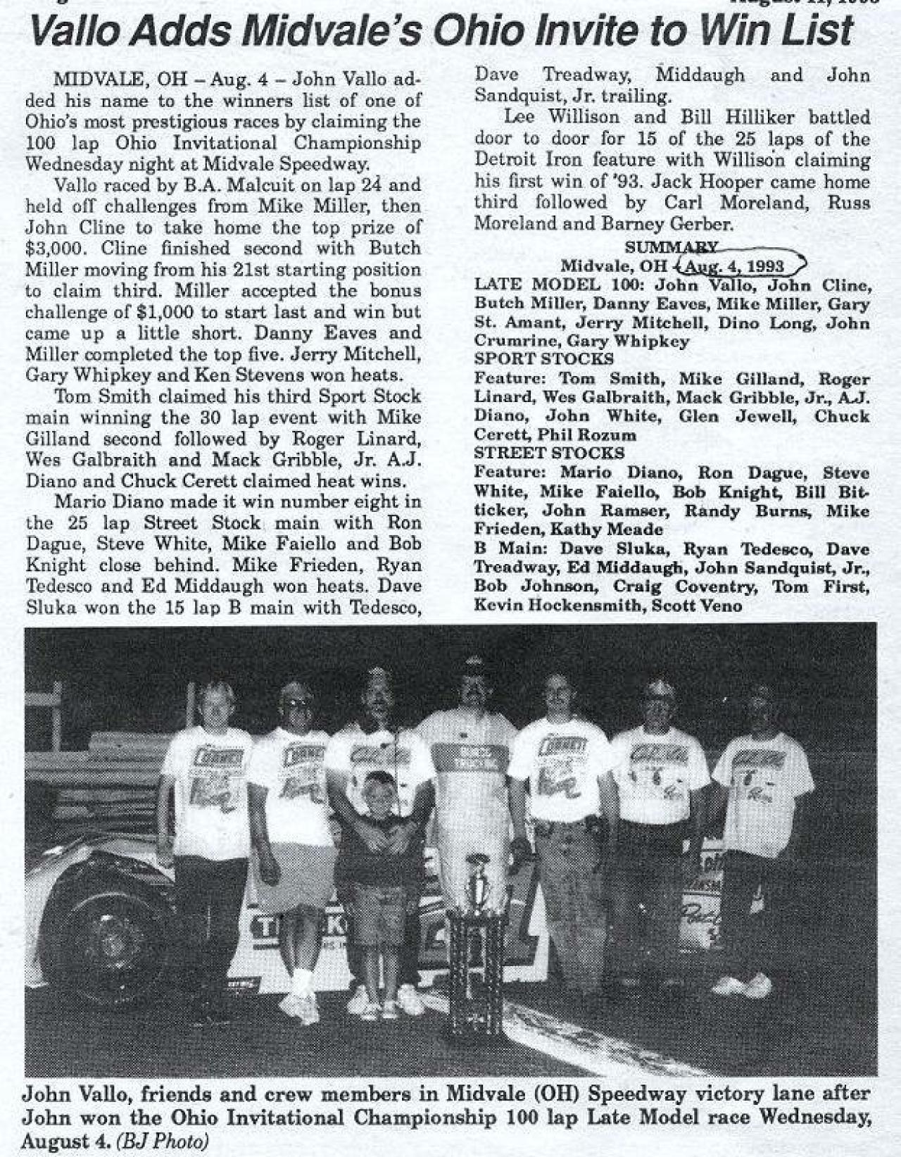*Ohio Late Model veteran John Vallo retired from driving after winning the Ohio state championship racing at Kil-Kare Speedway in Xenia and Columbus Motor Speedway. Vallo surpassed the 300 career win mark during the 2008 season, and claimed the Kil-Kare Late Model division track championship.