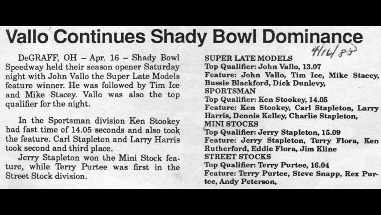 Shadybowl Speedway 1980,85