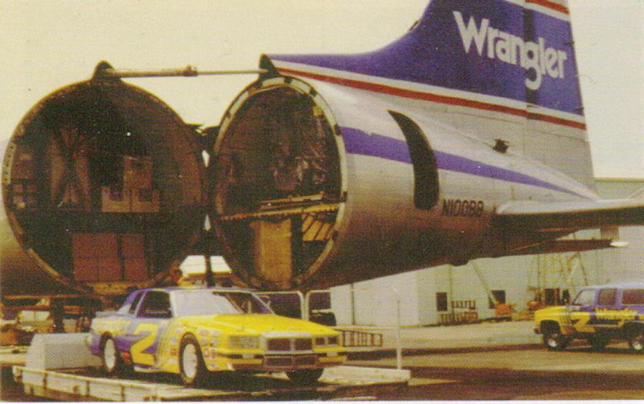 Greensboro, NC airport.. 1981, Osterlund/Earnhardt Pointiac showcar. Jim, I used to know what kind of aircraft, but forget. We had two of them. Flew them back and forth from Greensboro to our plants in Puerto Rico taking down denim and bringing back jeans.. Then they were licensed to carry general cargo, flying a lot of electronics out of Puerto Rico. One eventually crashed at Boston Logan Airport sometime between late 80s-mid 90s, I believe,when landing gear wouldn't deploy. There were AP wire photos at the time and some might exist in Boston newspaper archives.