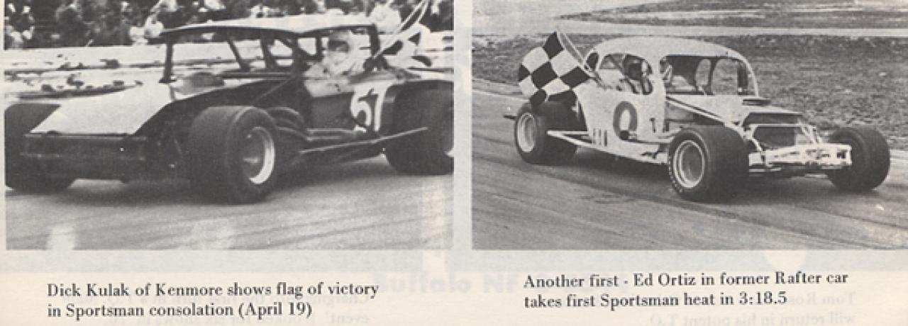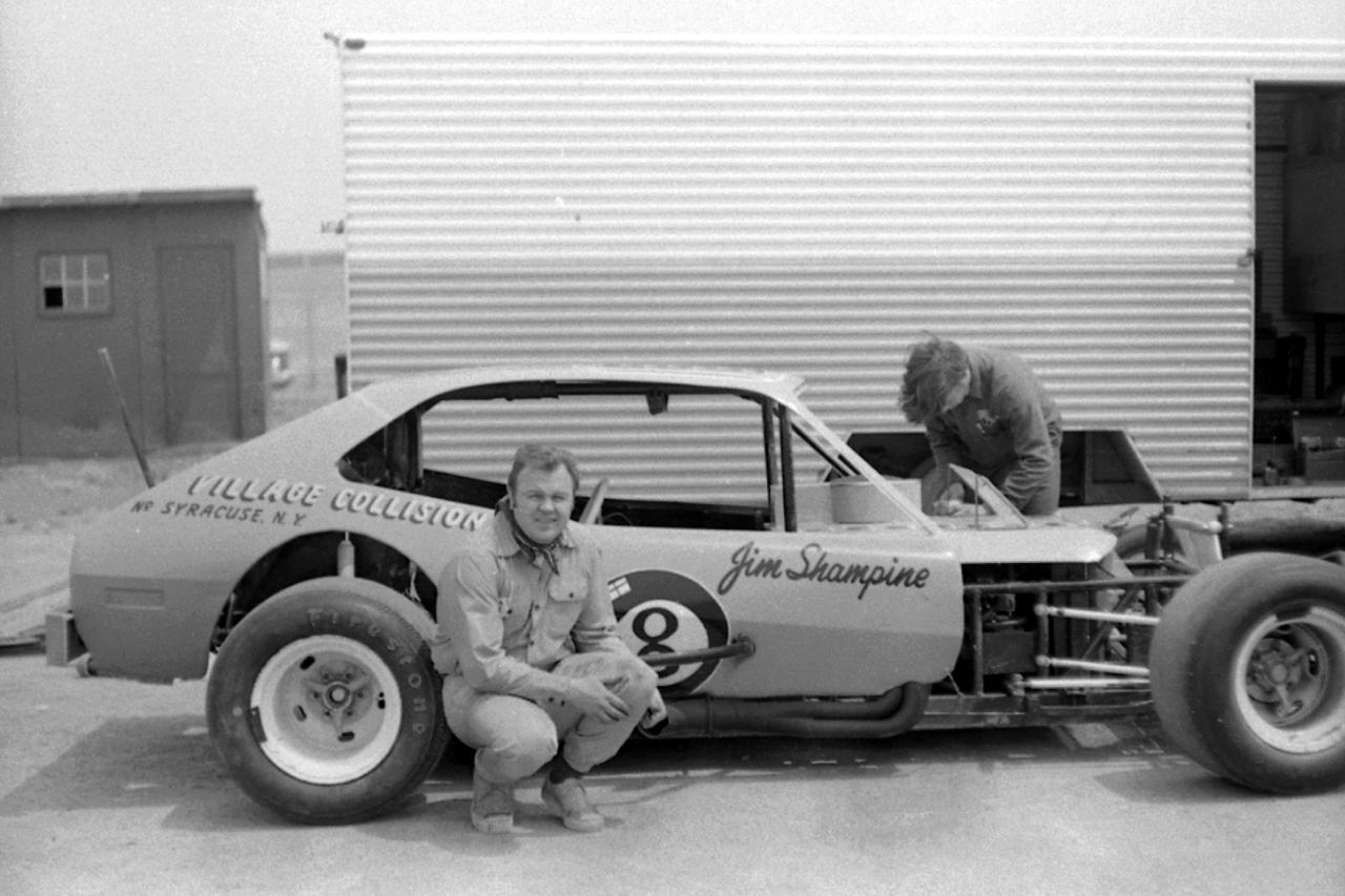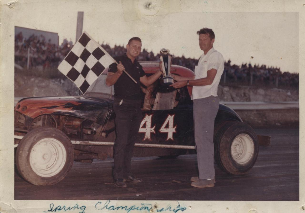 Legendary New York State Champion Steve Danish pictured here along side his signature cream colored #61. His always pristine cars and fully uniformed crew added a touch of class to the Sportsman dirt tracks of the '50's. Well after the then new V8's began competing, Steve's GM straight 6 cylinder entries continued to chalk up the wins. How well respected was Steve Danish through out his career? His competitors referred to him as "Mr. Danish". BTW, I watched Steve Danish compete at Fonda Speedway for over 10 years and never saw his car return with previous damage. It always looked new.